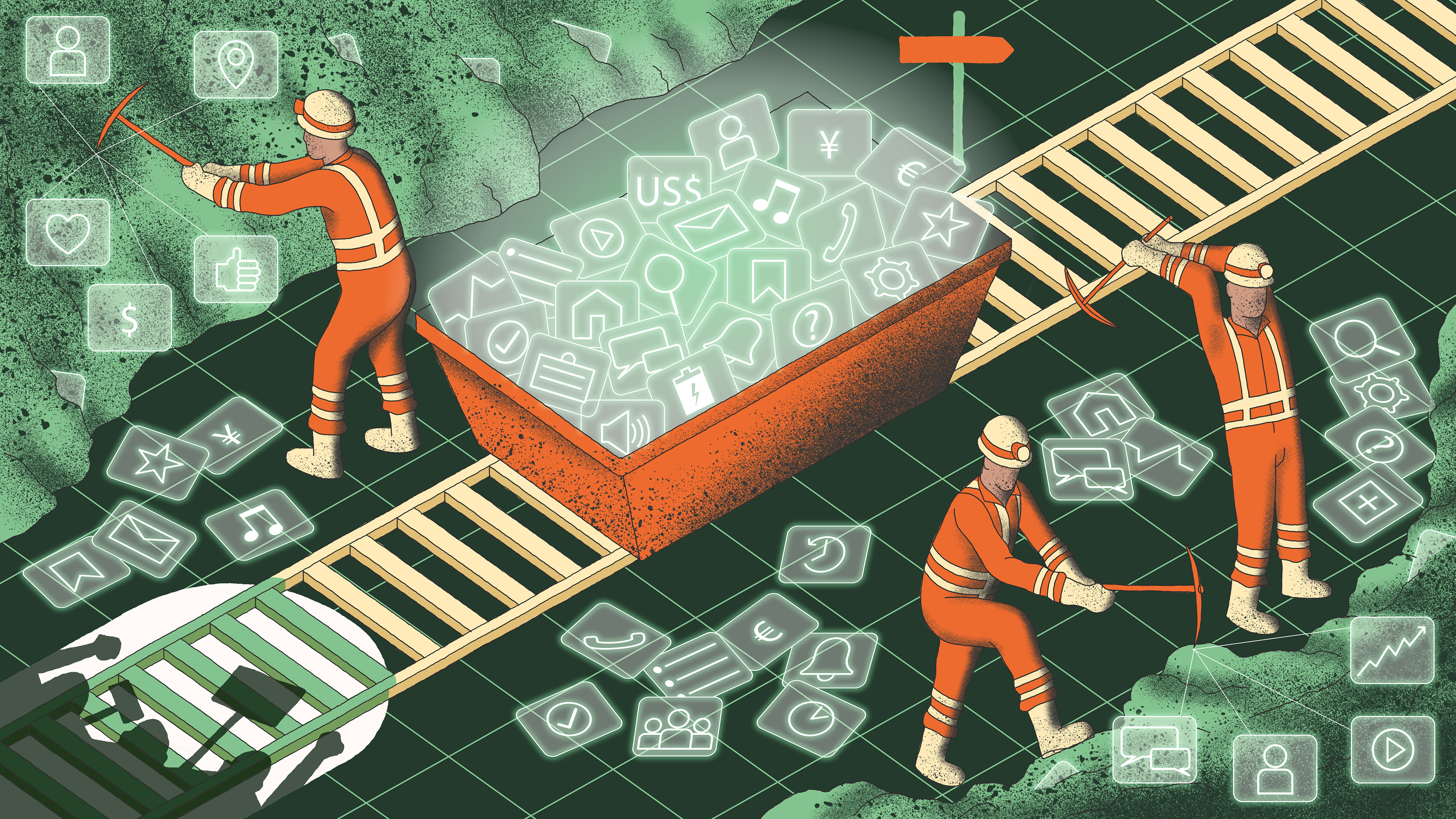 Illustration for the article "No volvamos a ser Potosí" about the digital free trade agreement and its consequences for Latin American countries.